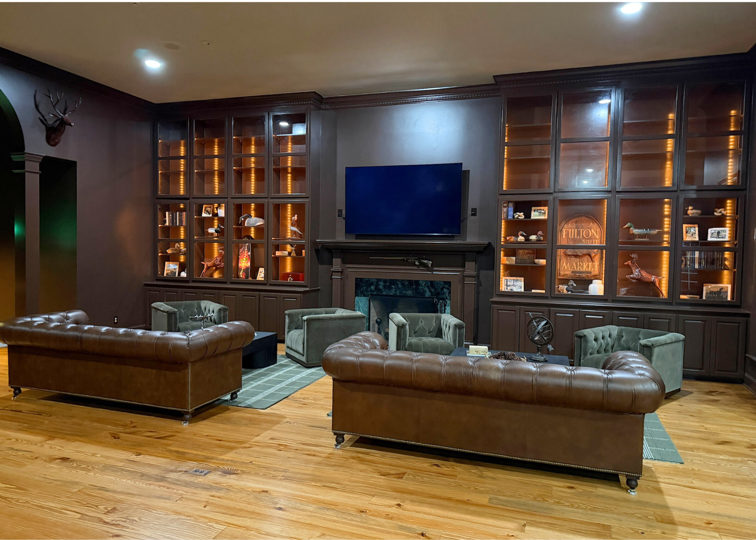 The 2,500 sq ft River Room was built to bring the group together in one place, serving as a team hub for stand down time, mission planning, and briefings, with space for recreation and team bonding.